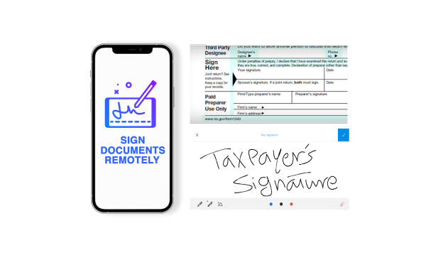 Remote Signature allows you to save time by letting you complete a tax return without the need for the taxpayer or spouse to be in your office. The taxpayer will authenticate their identity, review a copy of the return as a PDF, then sign. The signed return is then stored in your software for access anytime!
